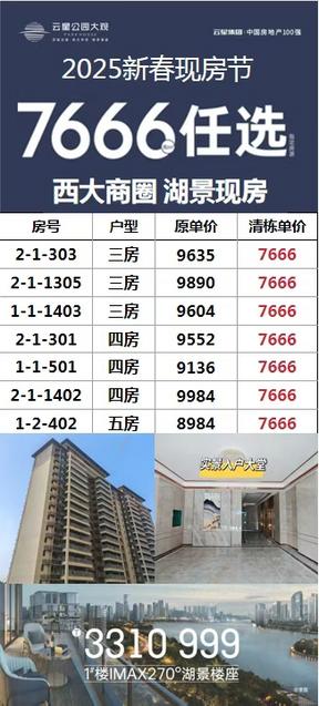 [烟花]西大商圈 湖景现房 ✅均价7600元 🏠片区**高品质现房 2#现房清栋限时送车位 1#湖景现房限时7字头