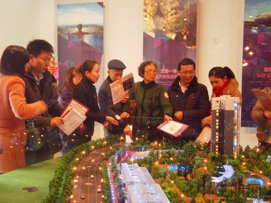 网友在售楼部看楼盘资料